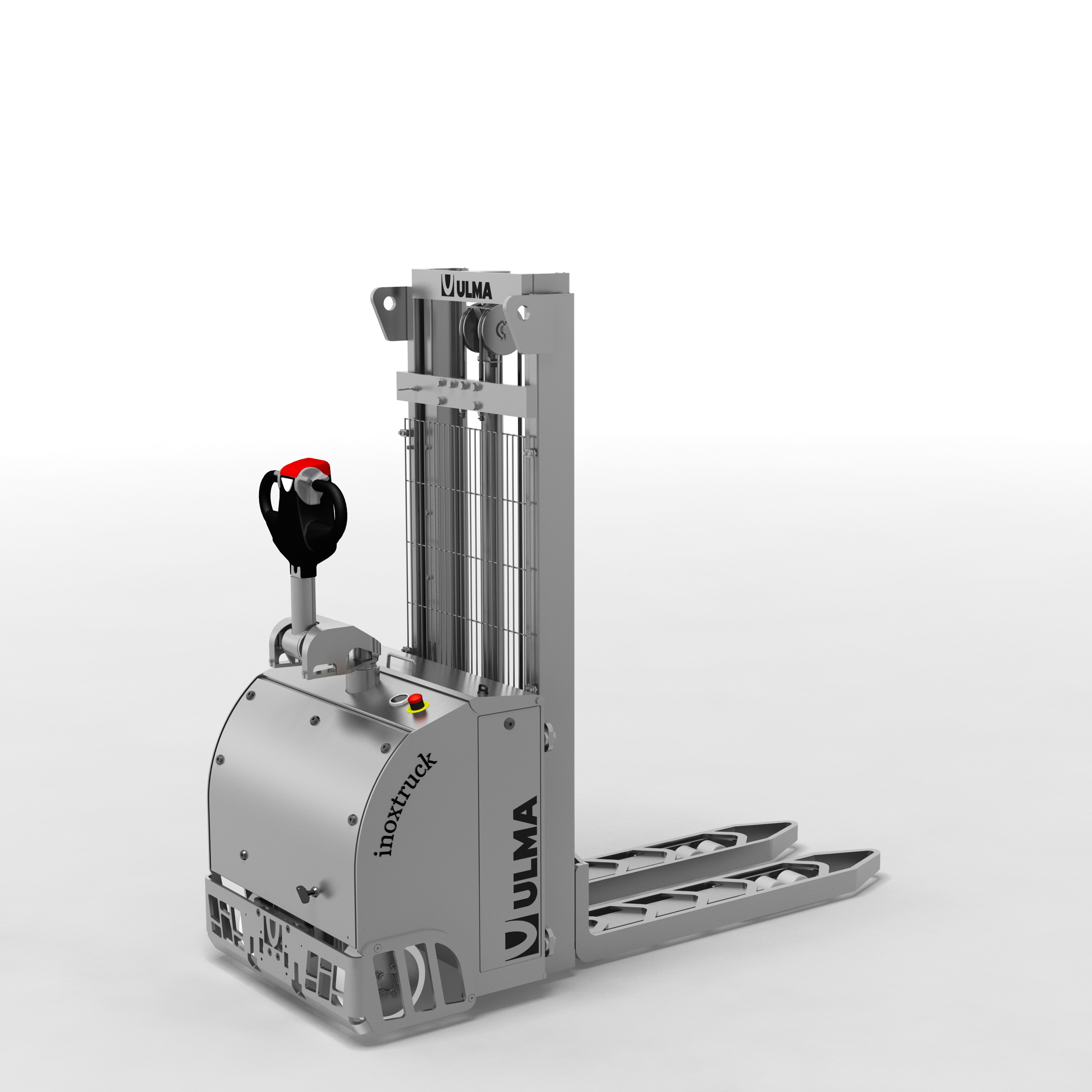 De ULMA EPS nox stapelaar met een open hygiënisch design en een hefvermogen van 1.0 - 1.5 ton.
