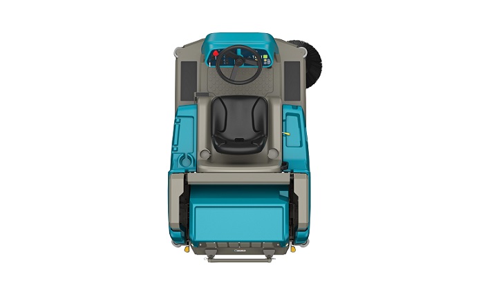 De Tennant S16 opzit veegmachine is geschikt voor verschillende oppervlakken en veegt verschillende soorten vuil op.